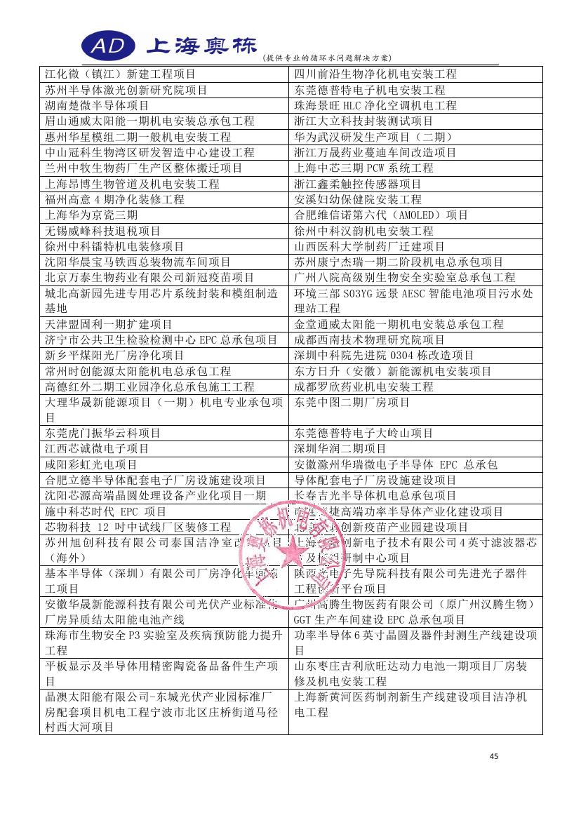 2023年上海奧棟合作項(xiàng)目清單